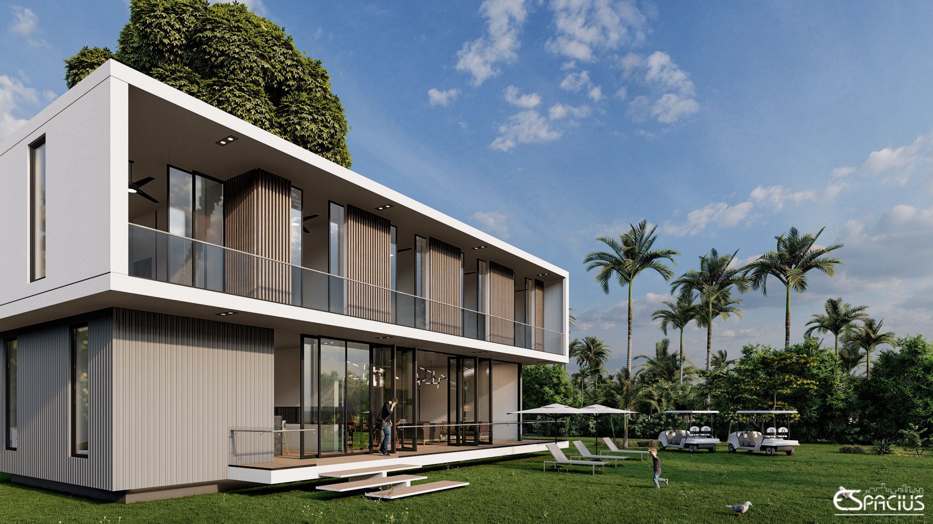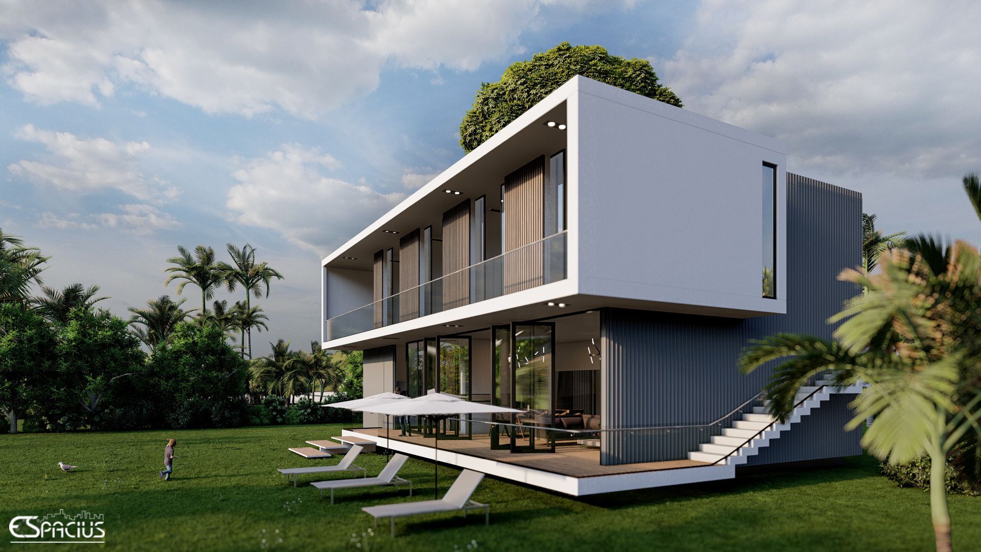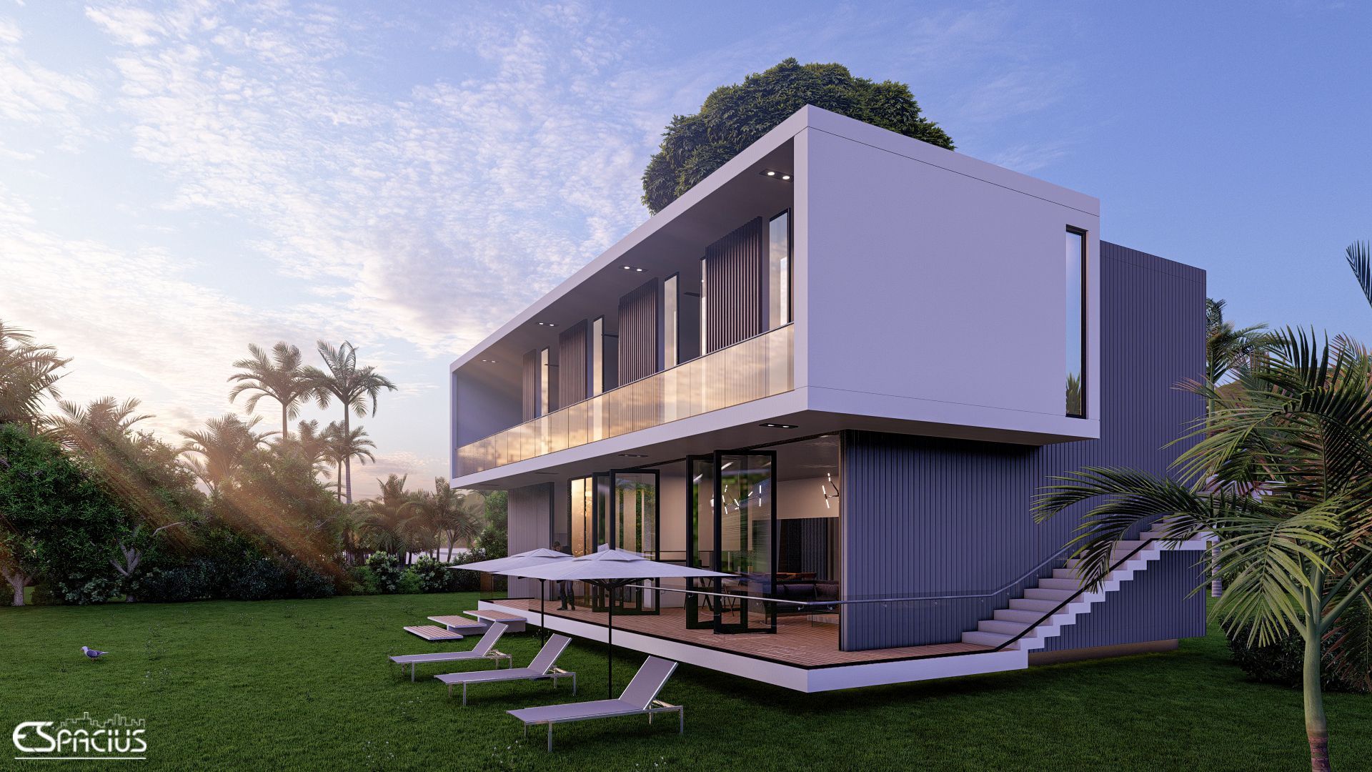 Este proyecto, ubicado en Santa Clara, Provincia de Coclé, consiste en el diseño de una casa de playa de estilo contemporáneo, destacando por su arquitectura moderna y funcional. La vivienda se compone de dos volúmenes en su fachada, generando un diseño dinámico y visualmente atractivo. Su estructura incorpora grandes ventanales, permitiendo una abundante iluminación natural y una conexión fluida con el entorno costero. En el segundo nivel, un balcón recorre toda la fachada, brindando vistas panorámicas y ampliando los espacios de descanso al aire libre. En la planta baja, una gran terraza se integra con las áreas de sala, comedor y cocina, creando una transición armoniosa entre los espacios interiores y exteriores, ideal para la convivencia y el disfrute en un ambiente fresco y abierto.