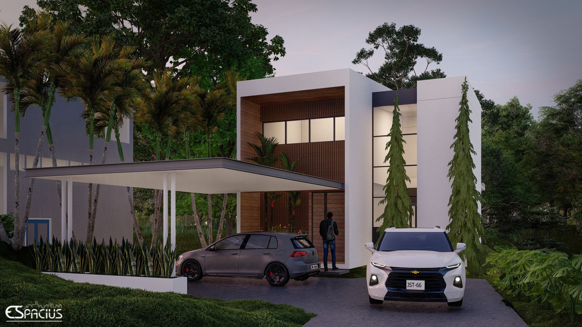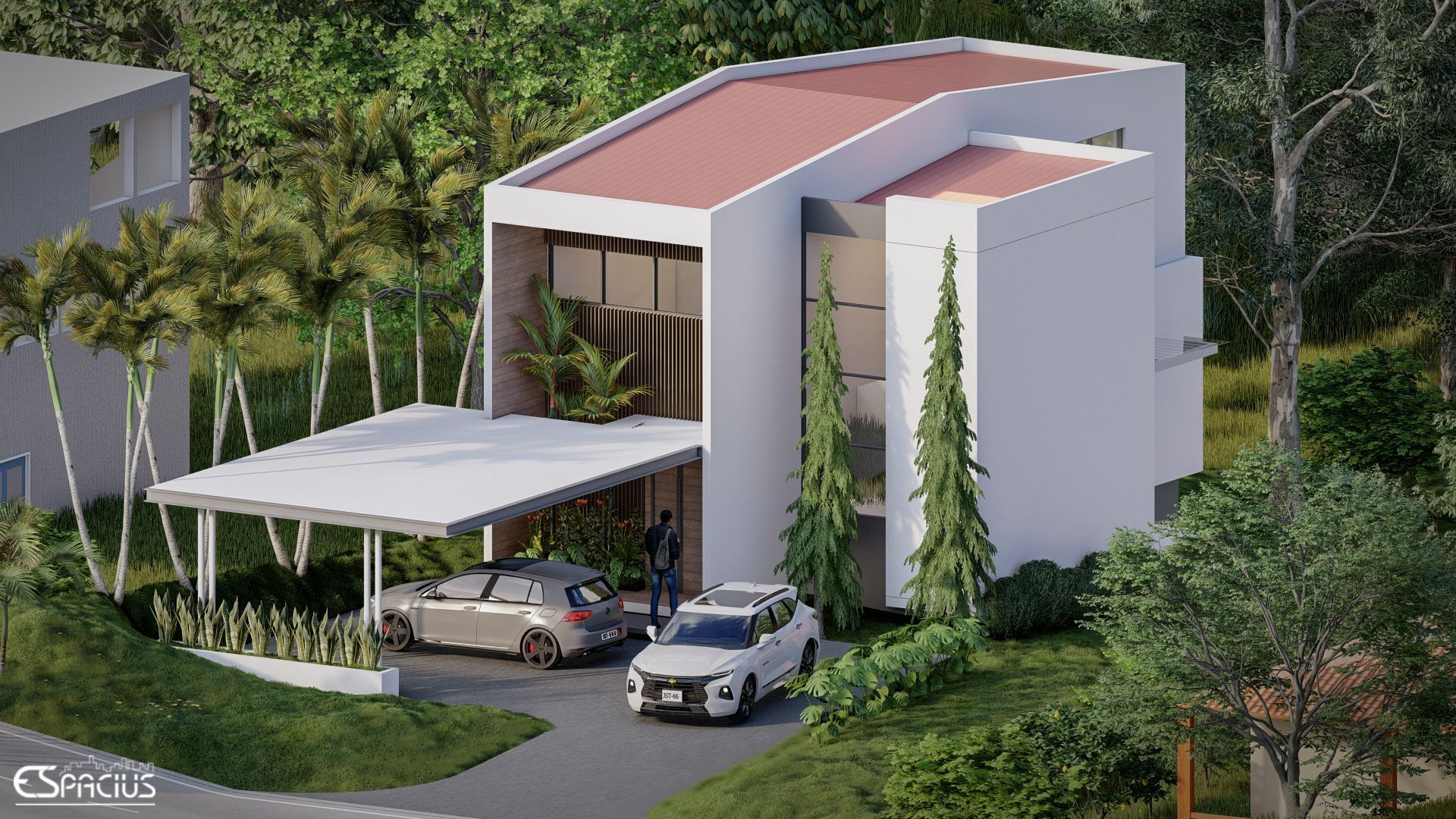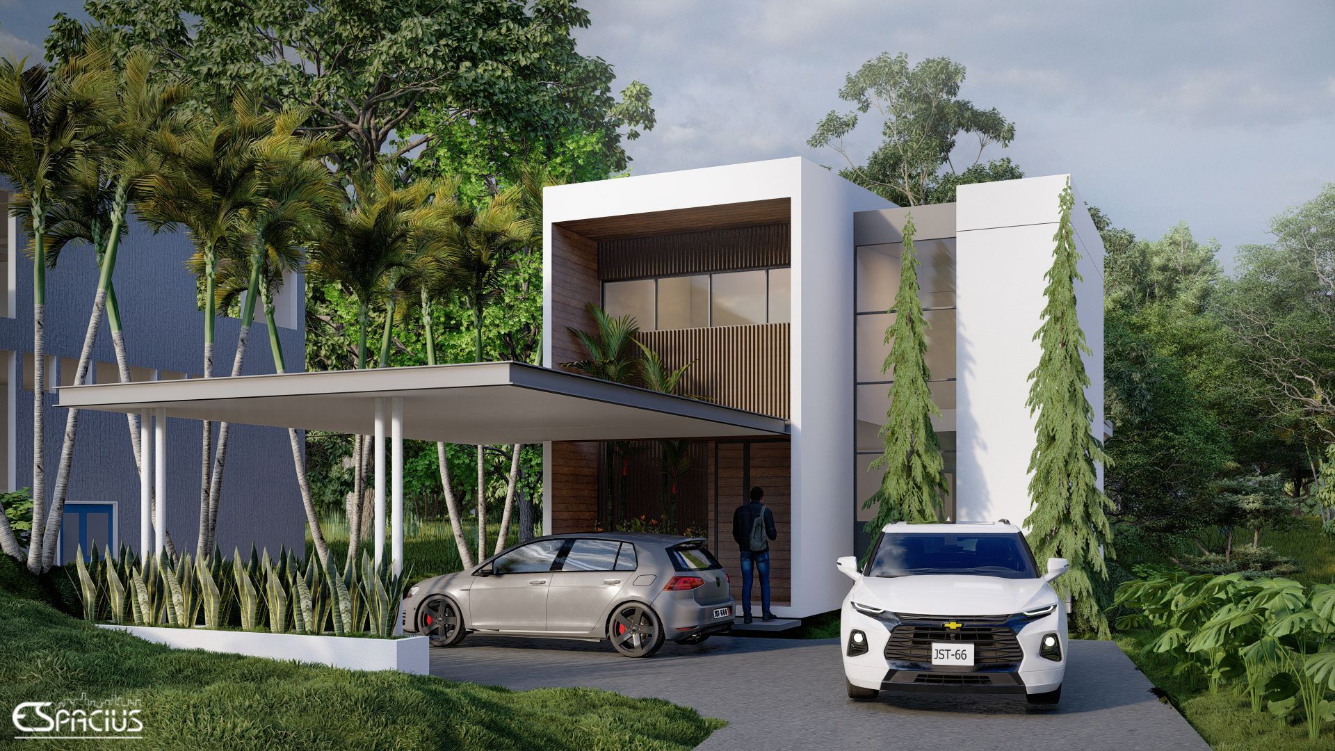 Este proyecto, ubicado en Villa Zaita, Provincia de Panamá, consiste en el diseño de una vivienda de estilo contemporáneo que combina líneas limpias, acabados minimalistas y una integración armoniosa con la naturaleza. Su arquitectura destaca por grandes ventanales, que favorecen la iluminación natural y la conexión con el exterior, además de la incorporación de vegetación en la fachada, aportando frescura y un diseño innovador. La distribución incluye habitaciones cómodas, baño, sala, comedor y cocina de concepto abierto, optimizando los espacios para mayor funcionalidad. Asimismo, cuenta con una terraza ideal para el descanso y la convivencia, y un estacionamiento para dos autos, logrando una vivienda moderna, eficiente y en equilibrio con su entorno.
