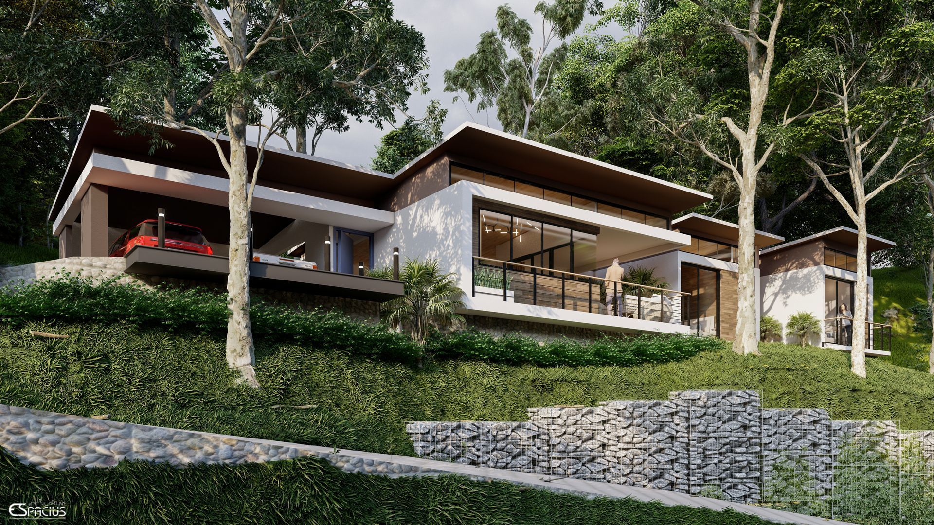 Este proyecto consiste en el diseño de una vivienda unifamiliar ubicada en Las Cumbres, Provincia de Panamá, con un estilo arquitectónico contemporáneo, adaptado a una topografía empinada y rodeado de árboles, integrándose armónicamente con la naturaleza. La propuesta arquitectónica aprovecha el desnivel del terreno para generar volúmenes dinámicos y espacios en distintos niveles, permitiendo vistas panorámicas y una conexión fluida entre el interior y el entorno. El uso de materiales naturales y modernos, junto con amplios ventanales, favorece la iluminación y ventilación natural, creando un ambiente acogedor, funcional y en sintonía con el paisaje.