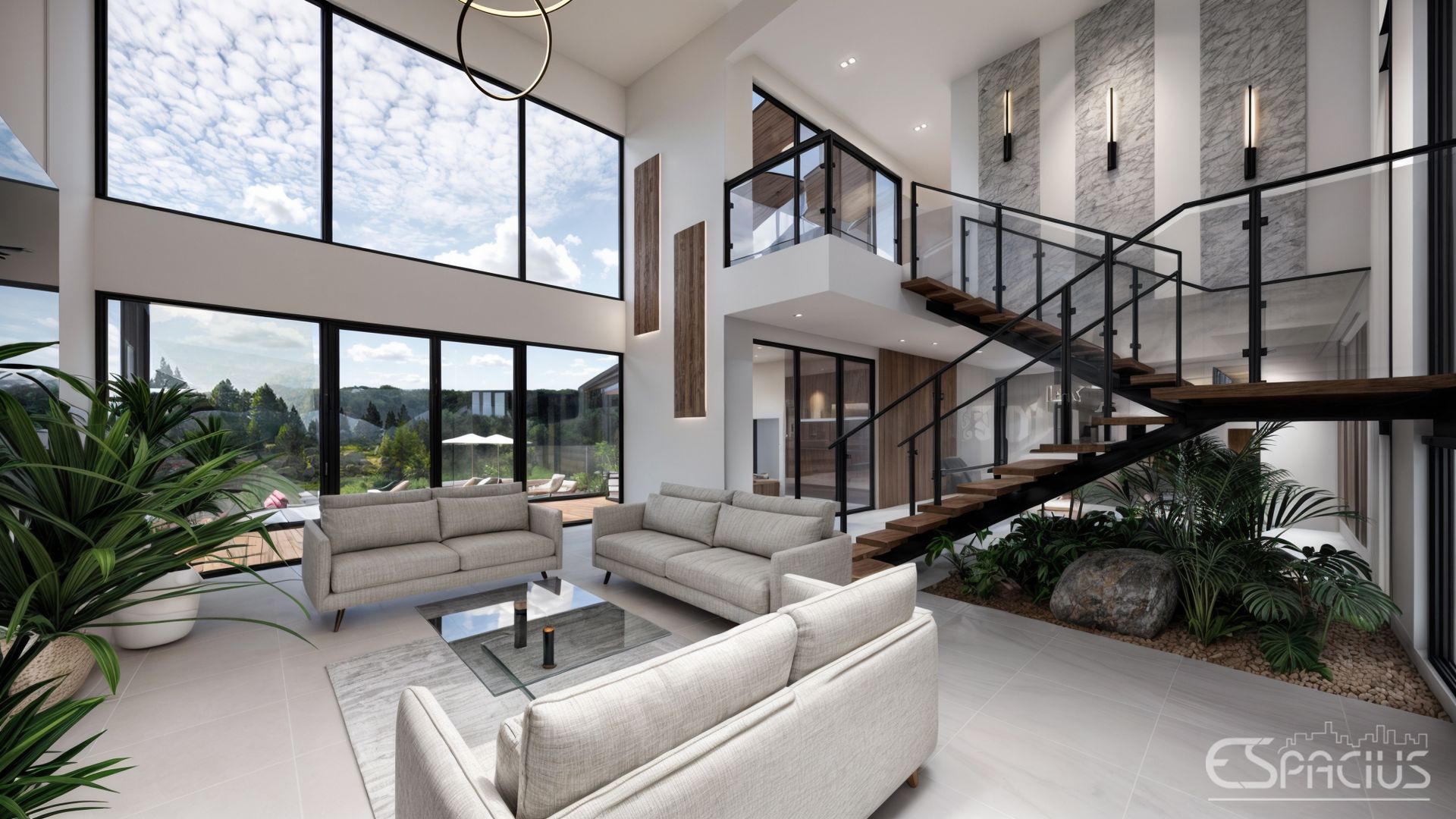 Este proyecto de interiorismo se desarrolla en una vivienda de dos niveles ubicada en Altos del María, concebida bajo un estilo campestre contemporáneo que armoniza elegancia y naturaleza. El diseño integra materiales como piedra natural, madera, vidrio y metal, creando una atmósfera cálida, sofisticada y en sintonía con el entorno montañoso. Los espacios amplios con doble altura y grandes ventanales permiten una conexión fluida con el paisaje exterior, potenciando la entrada de luz natural. La cocina, moderna y totalmente equipada, se convierte en un punto focal del hogar, combinando funcionalidad con diseño estético en un ambiente acogedor y de alto nivel.