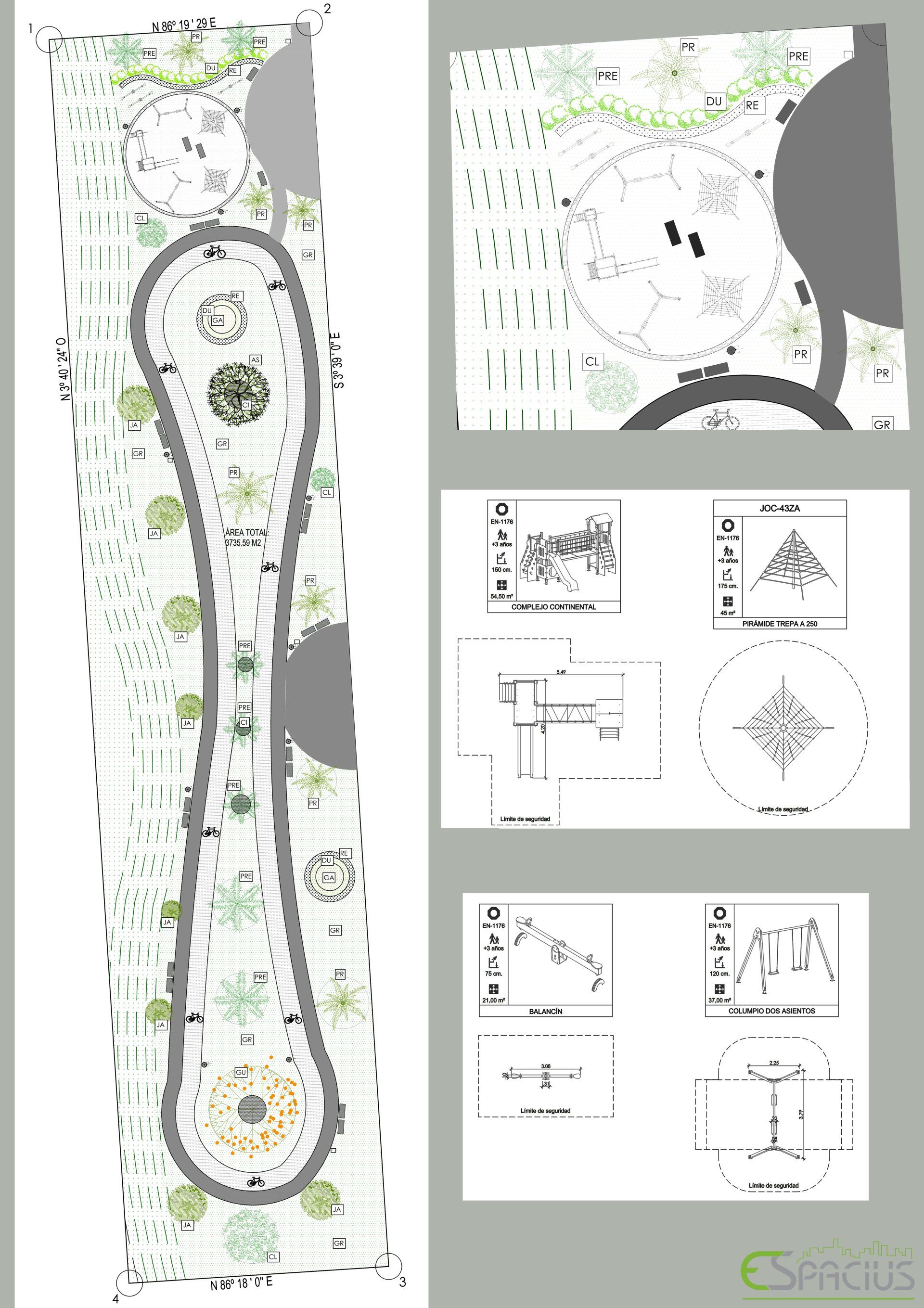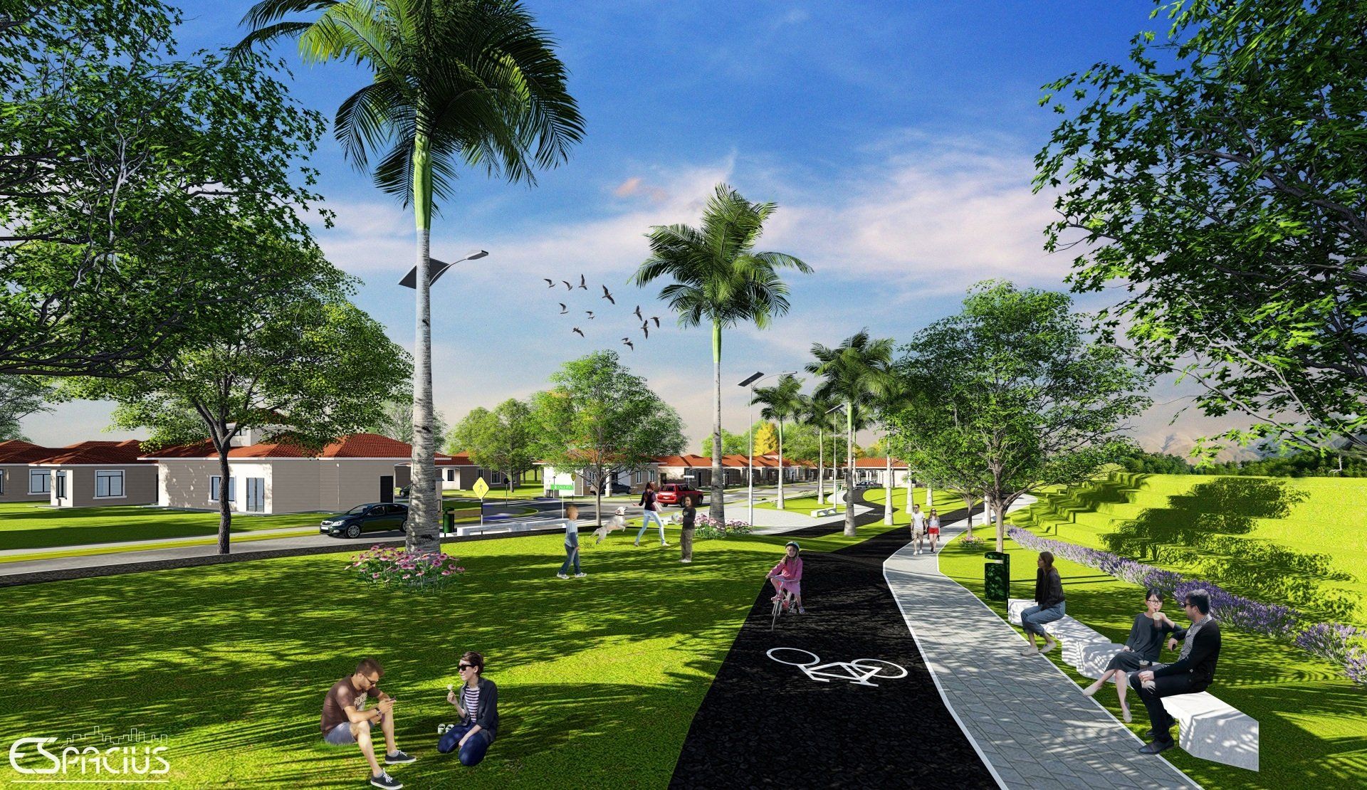 En la propuesta incluye un parque para recreación, en donde se desarrolla una ciclo vía para uso de sus residentes y visitantes, adicional aceras peatonales y diversos juegos infantiles, donde armoniza con una jardinería propia de la zona.